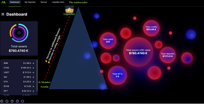 ETNA brings a new way of facilitating a gaming ecosystem leveraging the NFT assets and conventional games onto the blockchain platform. As a DeFi project amalgamating the functions of yield farming and NFTs, Etna now ventures into Lending and borrowing via cryptocurrency networks.
